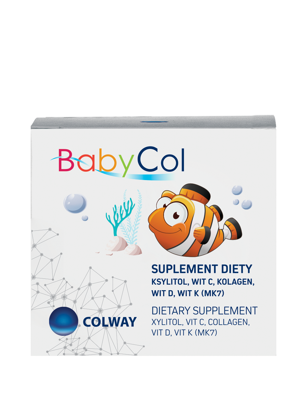 BabyCol zawiera w swoim składzie unikalną kombinację kolagenu rybiego oraz witamin D i K, a także ekstraktu z dzikiej róży będącego źródłem witaminy C. To z myślą o najmłodszych zawarto w nim wszystko co najlepsze z Colvity, Witaminy C-olway oraz ColDeKi,