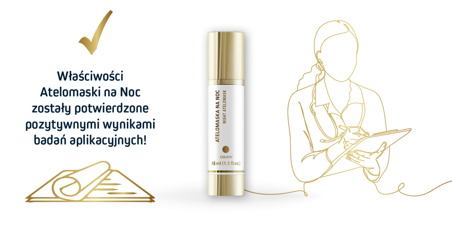 Uzyskanie tak spektakularnych efektów po przebudzeniu nie byłoby możliwe bez zastosowania w naszym kosmetyku oleosomowej, biomimetycznej bazy ciekłokrystalicznej, wykorzystywanej również w innym produkcie ze Złotej Linii Atelo, a mianowicie w Atelokremie MC2. Dzięki tej właśnie bazie możliwe jest stopniowe uwalnianie bioskładników oraz ochrona komórek przed wystąpieniem tak zwanego efektu Hayflicka i związanej z nim śmierci komórkowej, wynikającej z osiągnięcia limitu podziałów komórkowych. Tym samym Atelomaska na Noc COLWAY zapobiega starzeniu się.