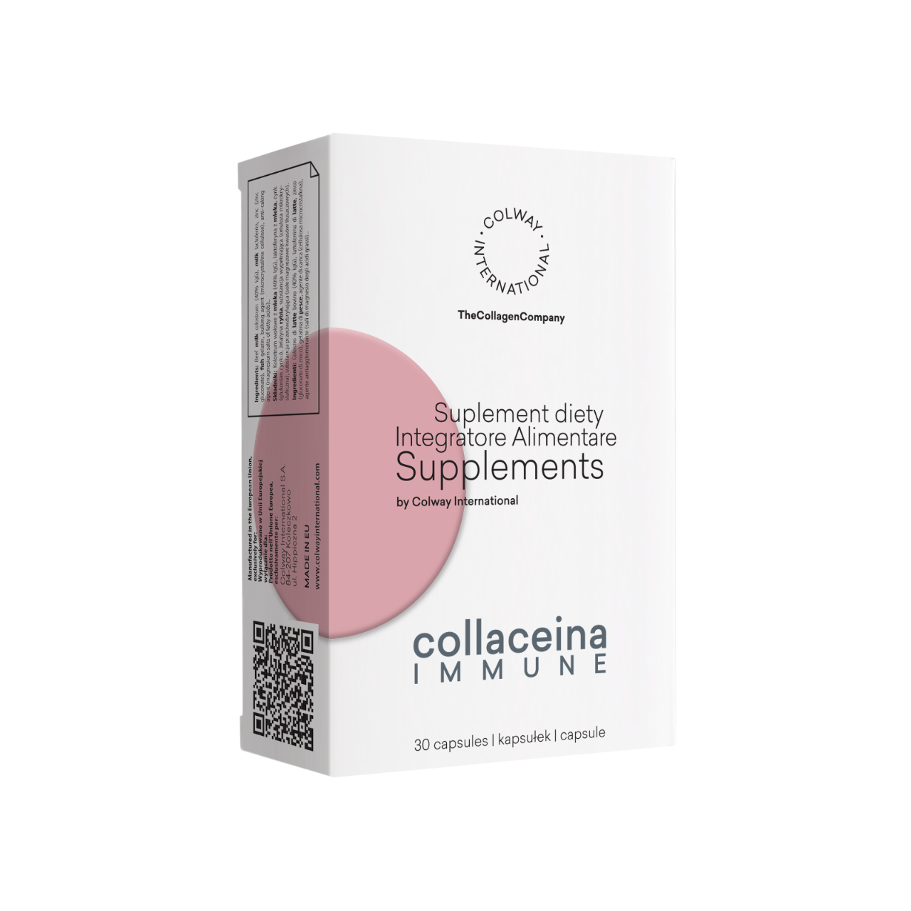 Collaceina Immune to połączenie wysokiej dawki kolostrum, laktoferyny i cynku.
